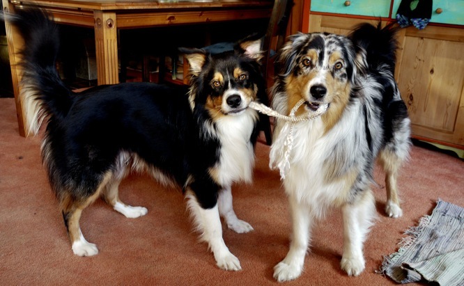 Lisann kennt sie aus ihren Welpentagen; Marlowe nimmt‘s gelassen und nutzt seine Chance des Extra-Schlucks.