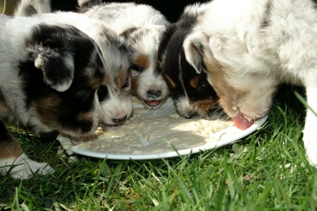 die Babys sind inzwischen 5½ Wochen alt und essen schon ganz manierlich aus dem Napf, Mama‘s Milchbar gibt‘s gerne noch als Nachtisch.