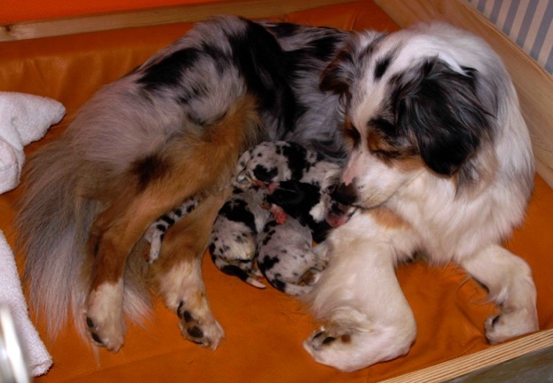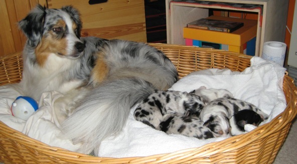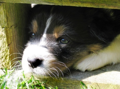 Pünktlich ab dem 14. Tag schauen zwei süße Knopfaugen aus dem Aussie-Gesicht heraus, was Anlass zu einer vielfach nachgefragten Foto-Session gibt: