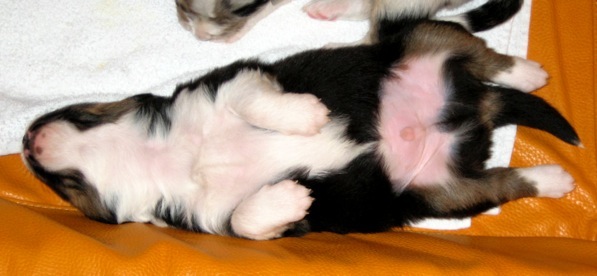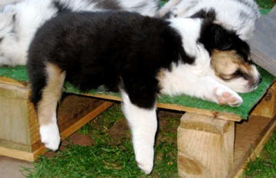 Derweil übt sich der Schwarze in aussie-typischer Tiefschlafstellung - Foto-Session nur für die Bunten. Onkel Leon weilt mal wieder auf Mön und hat versprochen, ihn nächstes Mal mit zu nehmen. Da sind wird dann ganz ausgeschlafen ;-)